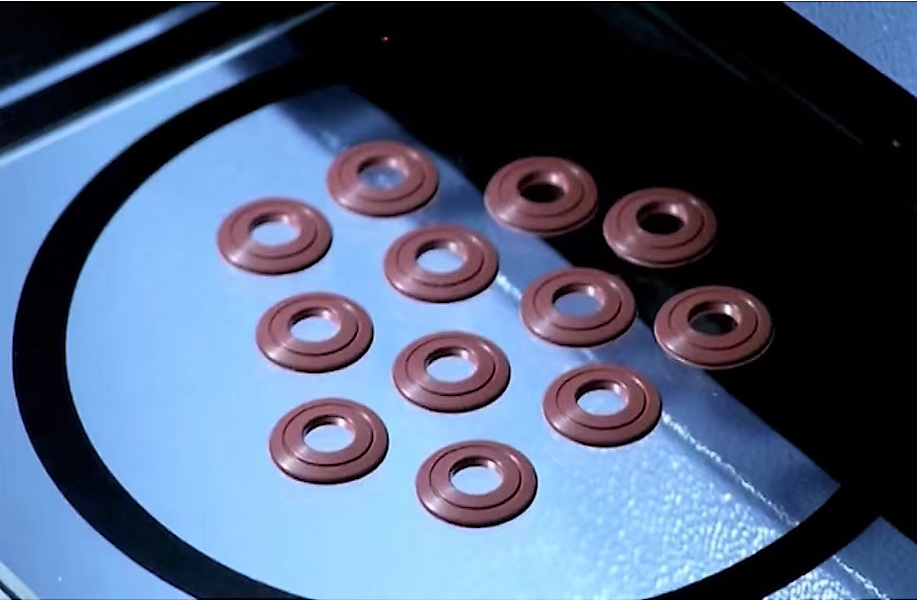 常用模壓方法來制造某些形狀復(fù)雜如皮碗、密封圈的橡膠制品,借助成型的陰、陽模具將膠料放置在模具中加熱成型。
