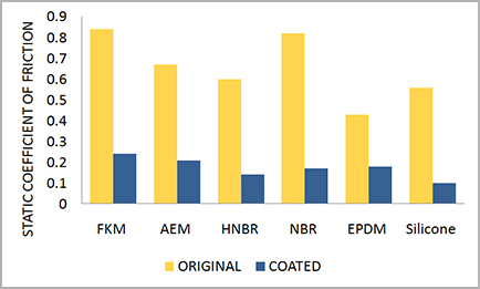 GMORS的先進(jìn)鐵氟龍涂層制程為裝配線提供了諸多優(yōu)勢,為您提供合格可靠的密封涂層。無論是哪種橡膠材料,使用鐵氟龍涂層,靜摩擦系數(shù)都可以降低70%以上,如圖1所示 。